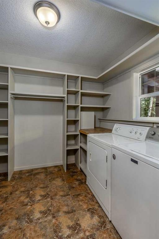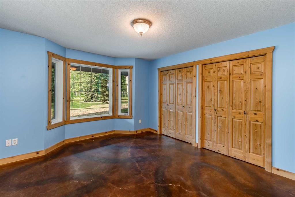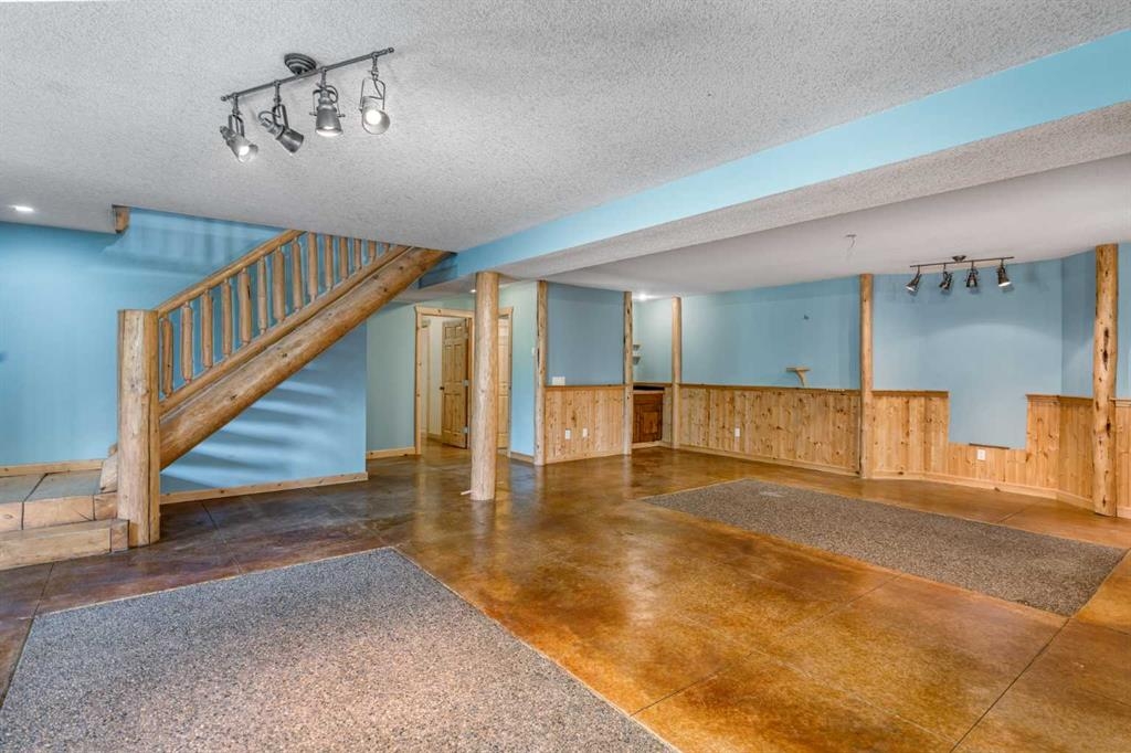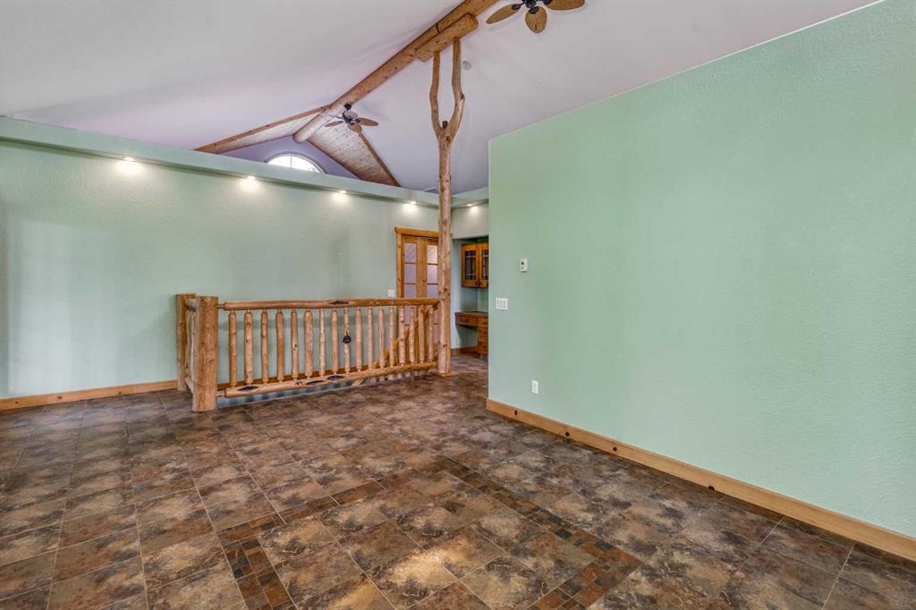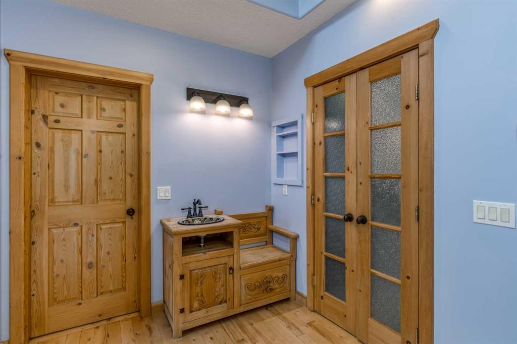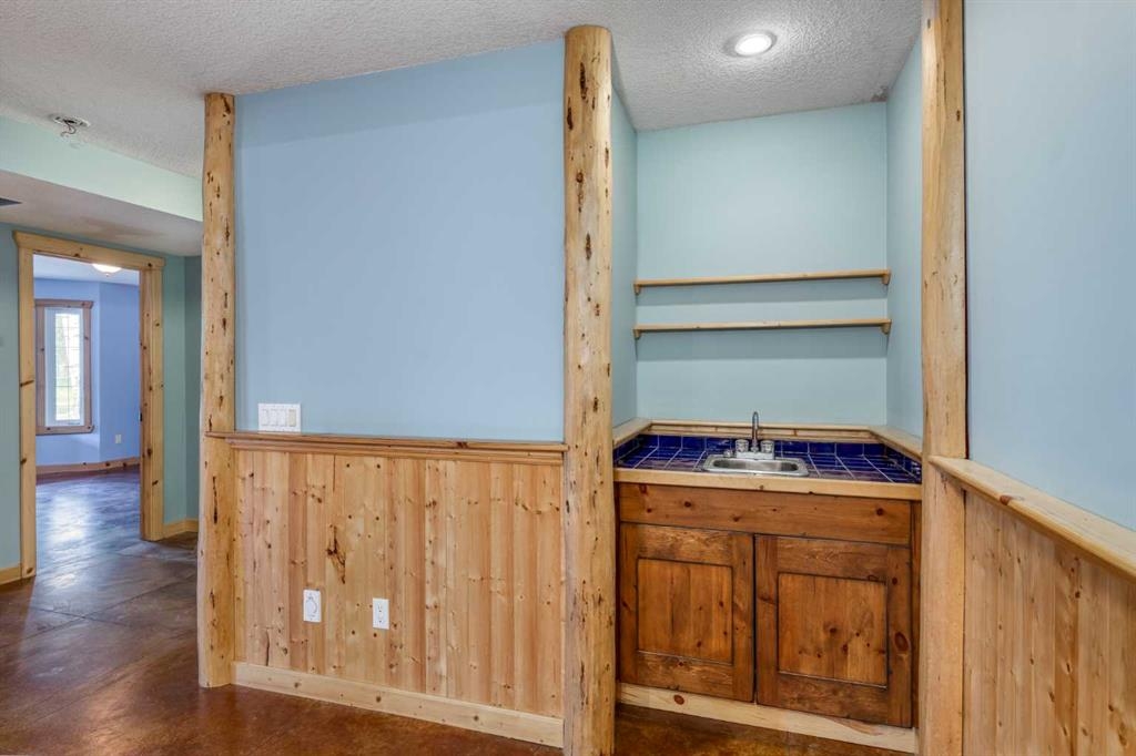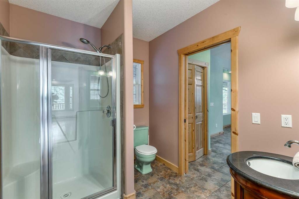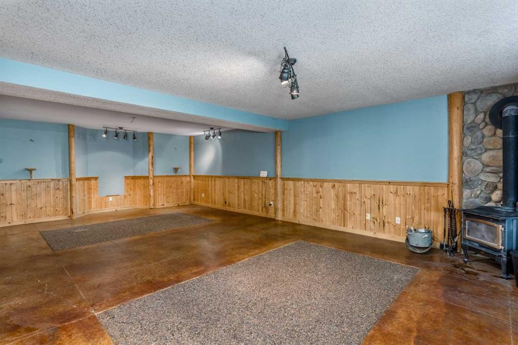 Tucked away in a serene, park-like setting right off Highway 22 and surrounded by mature trees, this unique property offers the perfect blend of rustic charm and practical functionality. The home is a rustic bungalow with a warm Southwestern feel, featuring over 2,278 sq ft of developed living space, a walkout basement, soaring vaulted ceilings, in-floor heat, a cozy wood-burning stove, a gas fireplace, and a gas stove—creating an inviting and comfortable atmosphere throughout. A sprawling 1,350 sq ft wrap-around porch embraces the home, offering the ideal space to relax, entertain, and take in the natural beauty of the surroundings.