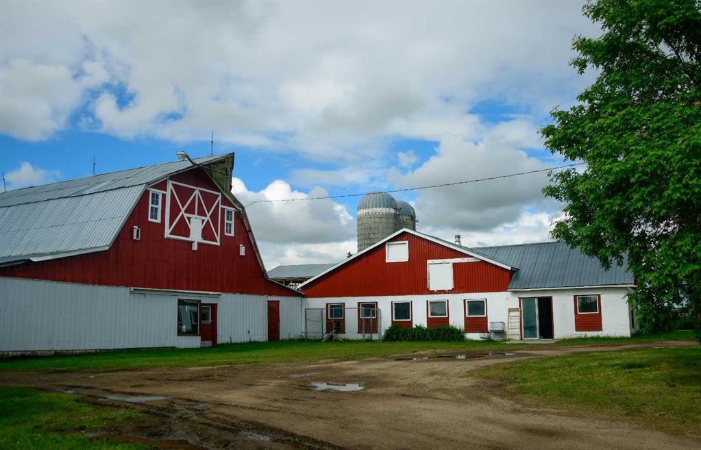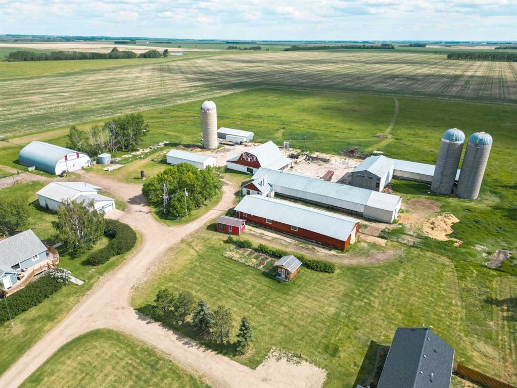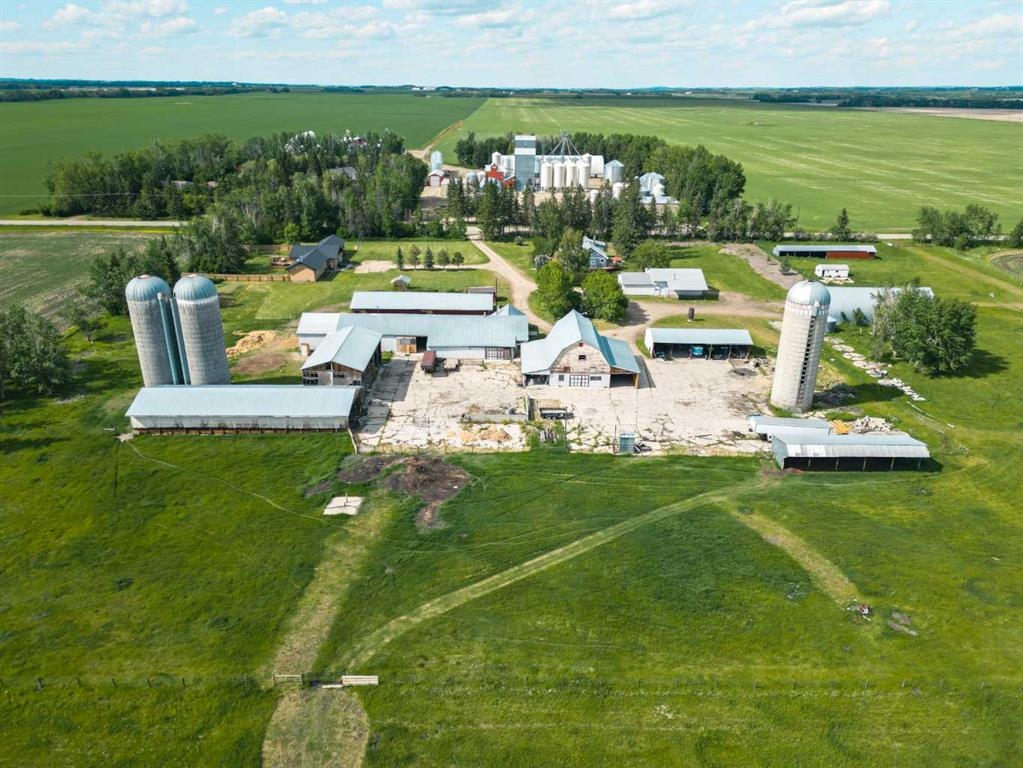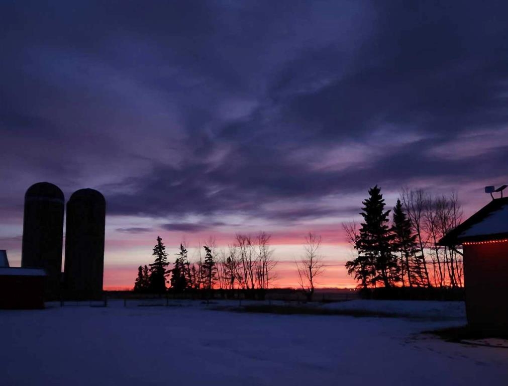 Nestled on a picturesque 19.96-acre property 10 minutes northeast of Olds on pavement, this meticulously maintained farm, featuring 2 homes, offers a rare blend of modern comfort, agricultural potential, and serene rural living. The centerpiece of this