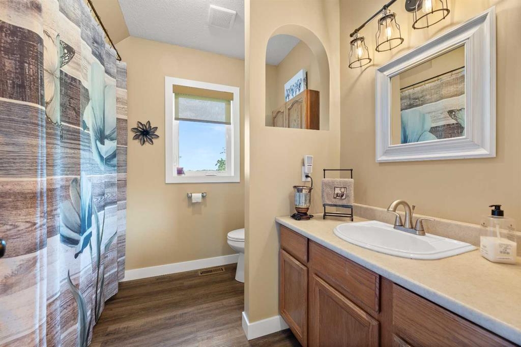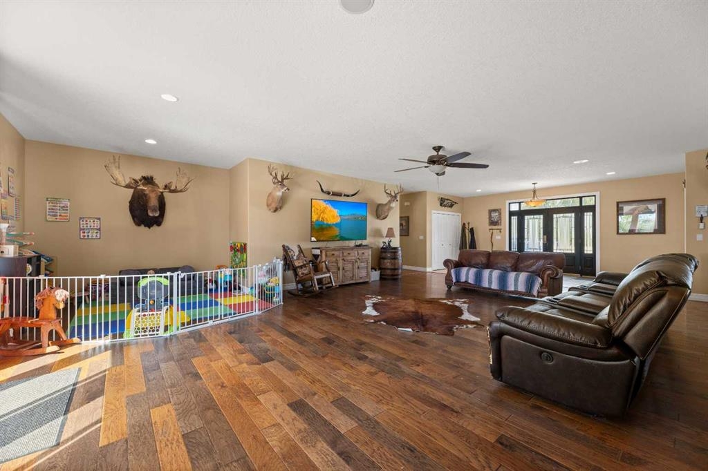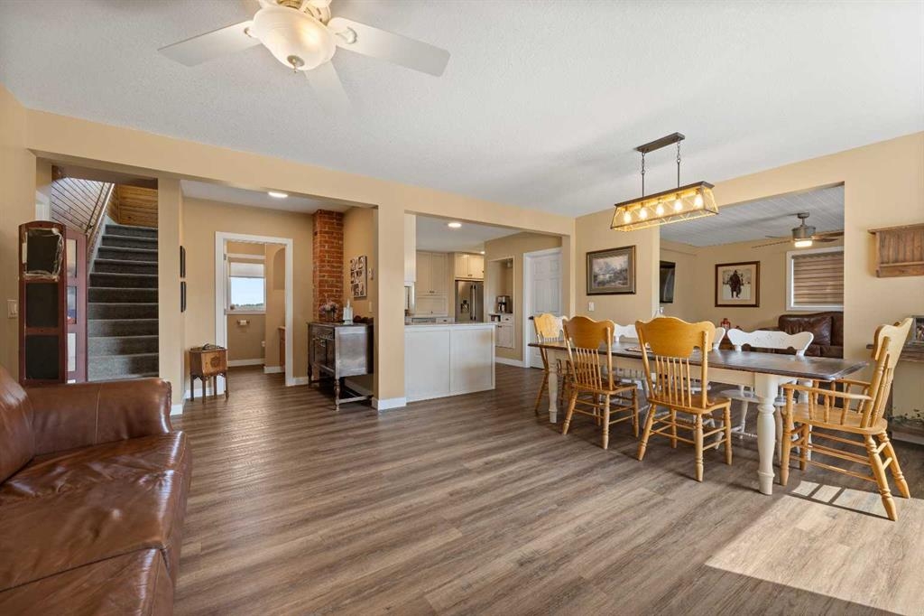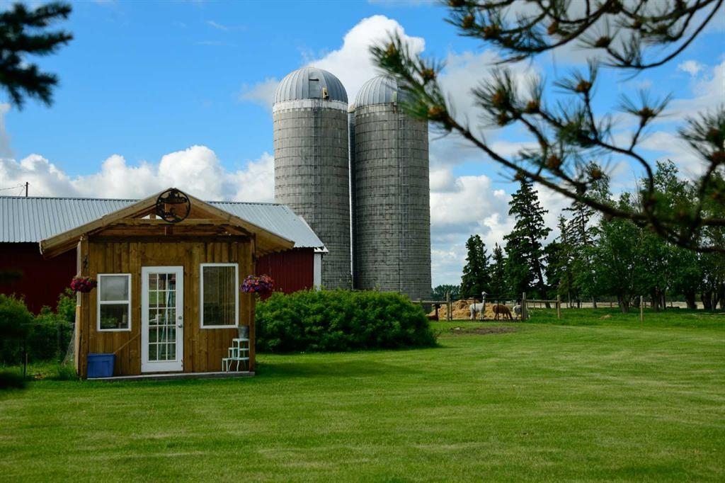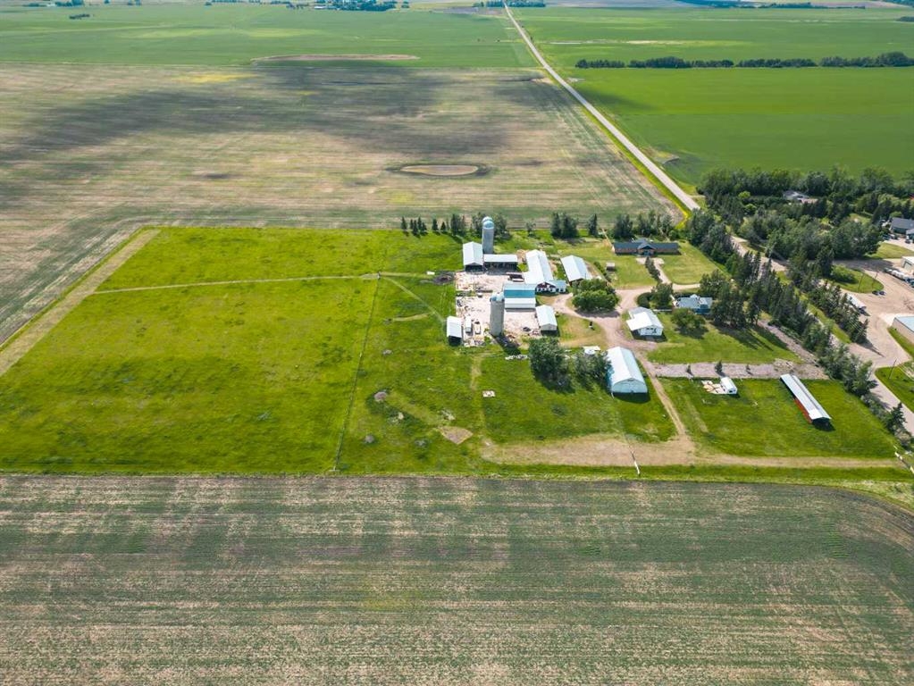 Nestled on a picturesque 19.96-acre property 10 minutes northeast of Olds on pavement, this meticulously maintained farm, featuring 2 homes, offers a rare blend of modern comfort, agricultural potential, and serene rural living. The centerpiece of this