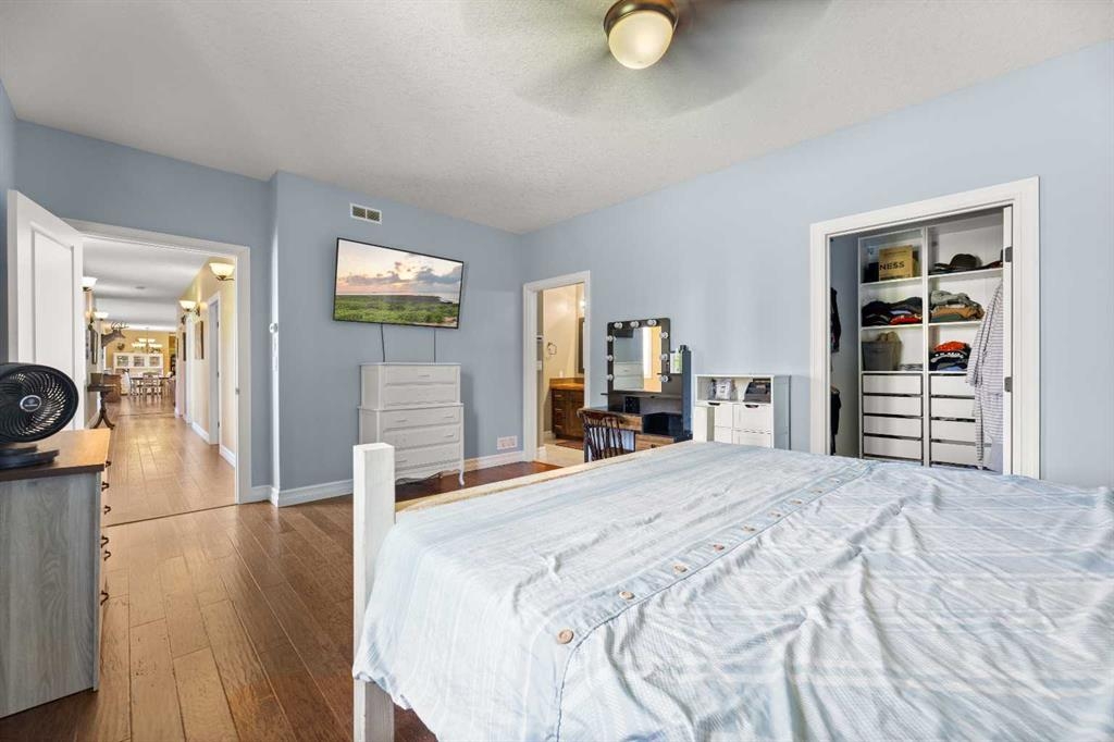remarkable property is a 2012 executive ranch-style home. Upon entering, you're greeted by soaring ceilings and an open-concept living area, featuring custom maple cabinetry, engineered hardwood, and in-floor heating throughout for year-round comfort. The spacious primary bedroom includes a lavish ensuite bathroom, while two additional bedrooms and a 4-piece bathroom provide ample space for family or guests. A walk-through